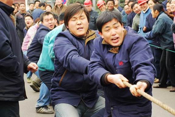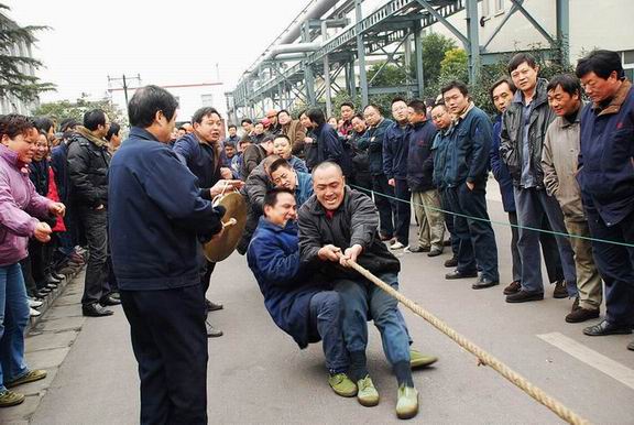 日下午,公司首届苏润杯拔河比赛拉开帷幕,办公大楼前呐喊声、助威声、加油声、锣鼓声交织一起,