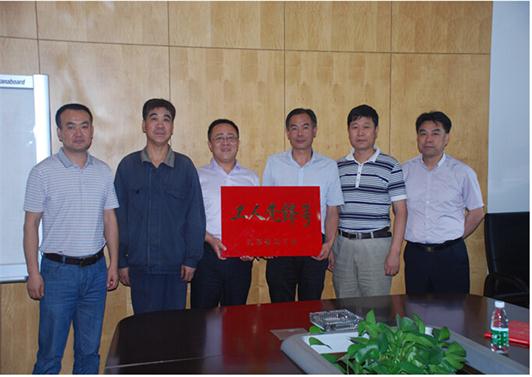 日上午,镇江市总工会吴科、张彦副主席一行到我公司对我公司工会工作进行了调研,并为获得“江苏省工人先锋号”称号的碳素车间进行了授牌。